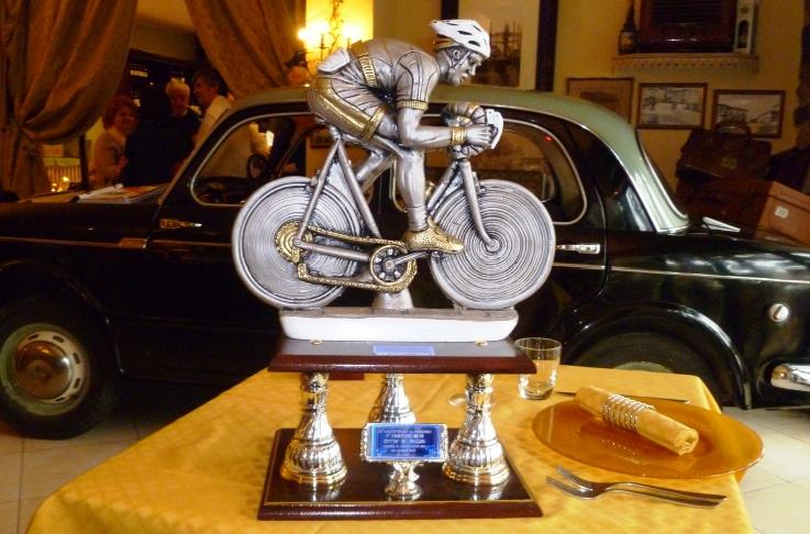 Sopra: i ciclisti della squadra AVIS NSN con la nuova divisa, alla partenza della 10a Edizione della Mediofondo di Porsenna. Con loro, al centro della foto, il presidente della Sezione Comunale Avis della Cittā di Chiusi, Mario Franceschini. Sotto: il 1° Trofeo AVIS Cittā di Chiusi messo in palio dalla locale Sezione dei Donatori di Sangue, č stato assegnato alla nostra Societā.