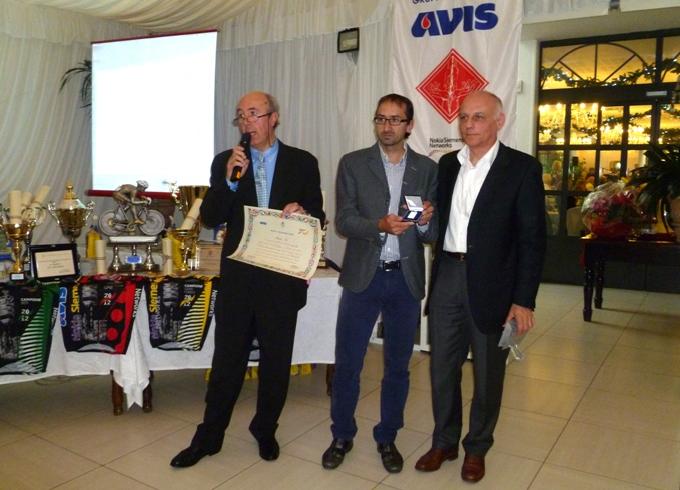 Sopra: il presidente Luigi Vidali mentre da lettura della pergamena con la motivazione dell'assegnazione del Premio ad Andrea Noè. Sotto: il momento della consegna del Premio Avis Sport e Solidarietà 2012 da parte dell'ing. Cristiano Radaelli di Nokia Siemens Networks.